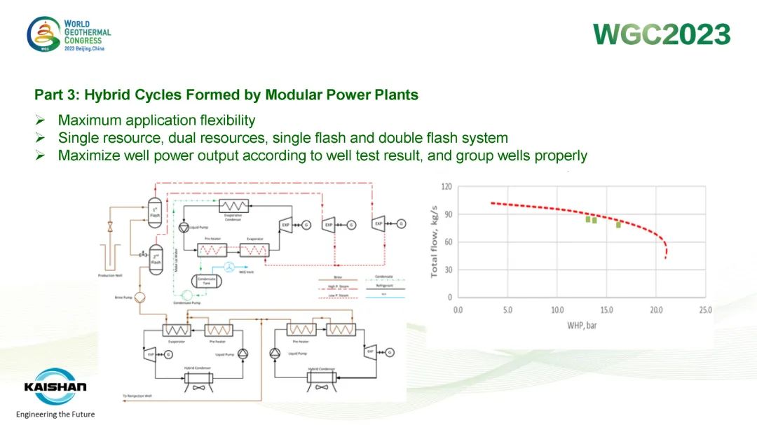 9月16日,公司總經(jīng)理、開山地?zé)峋谀K發(fā)電技術(shù)創(chuàng)始人湯炎博士參加2023年北京世界地?zé)岽髸╓GC),并受國際地?zé)釁f(xié)會(IGA)首席執(zhí)行官Marit Brommer女士邀請,做了題為《使用地?zé)崮K電站提高地?zé)峋a(chǎn)量》(Improving Well Power Output Using Modular Geothermal Power Plants)的專題報告。